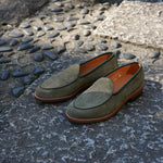 イタリアのオペラ社が作り出すスエードを採用しました。毛足が柔らかく短いのが特徴で非常に滑らかです。銀面が残る為とても耐久性が高く、スエード面には撥水加工が施されていますので、雨天時も気兼ねなく履くことができる素材です。