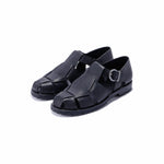 The upper is made from a single piece of thick, firm leather. The shoe is made on a wooden last with ample width, and can be worn with socks.