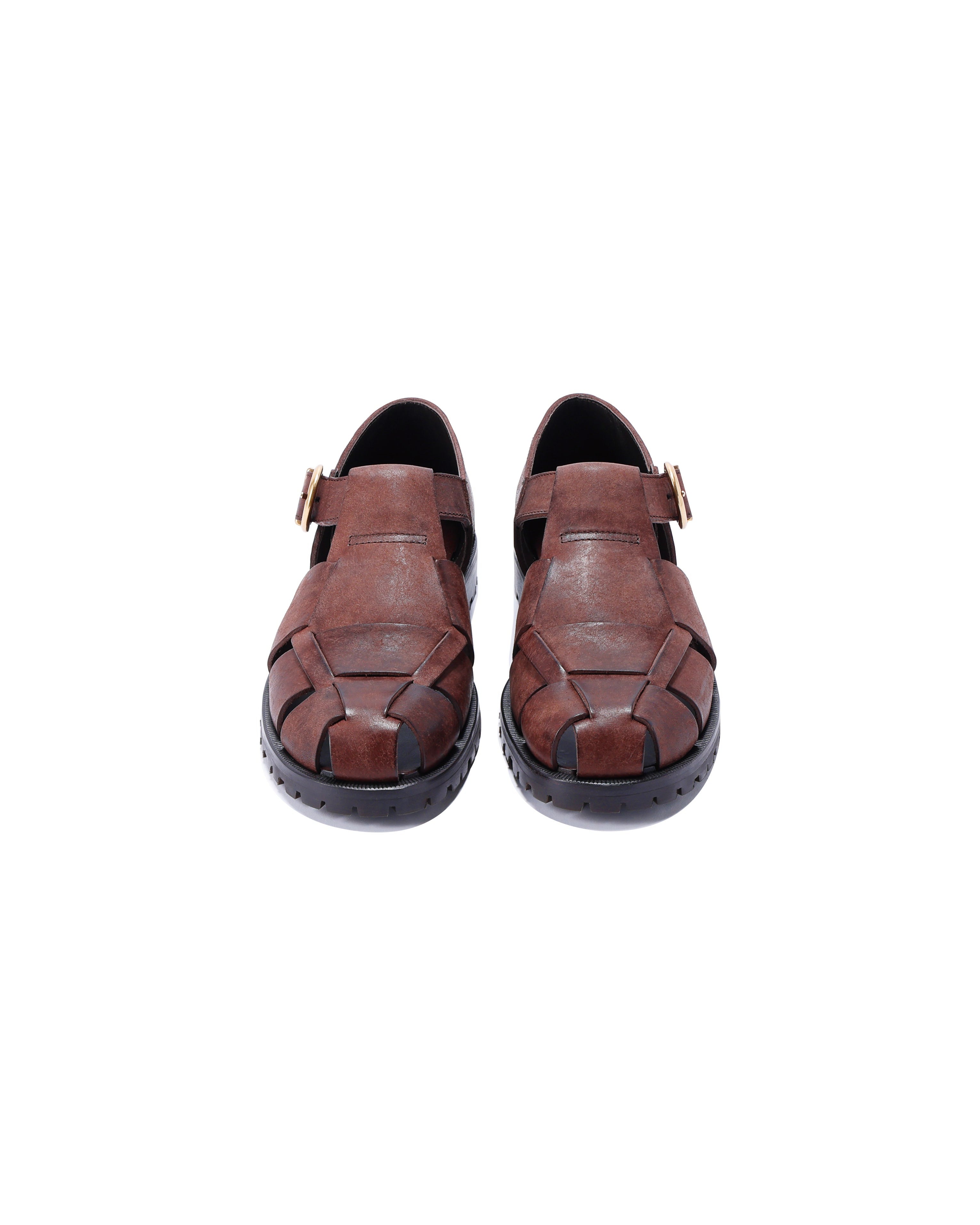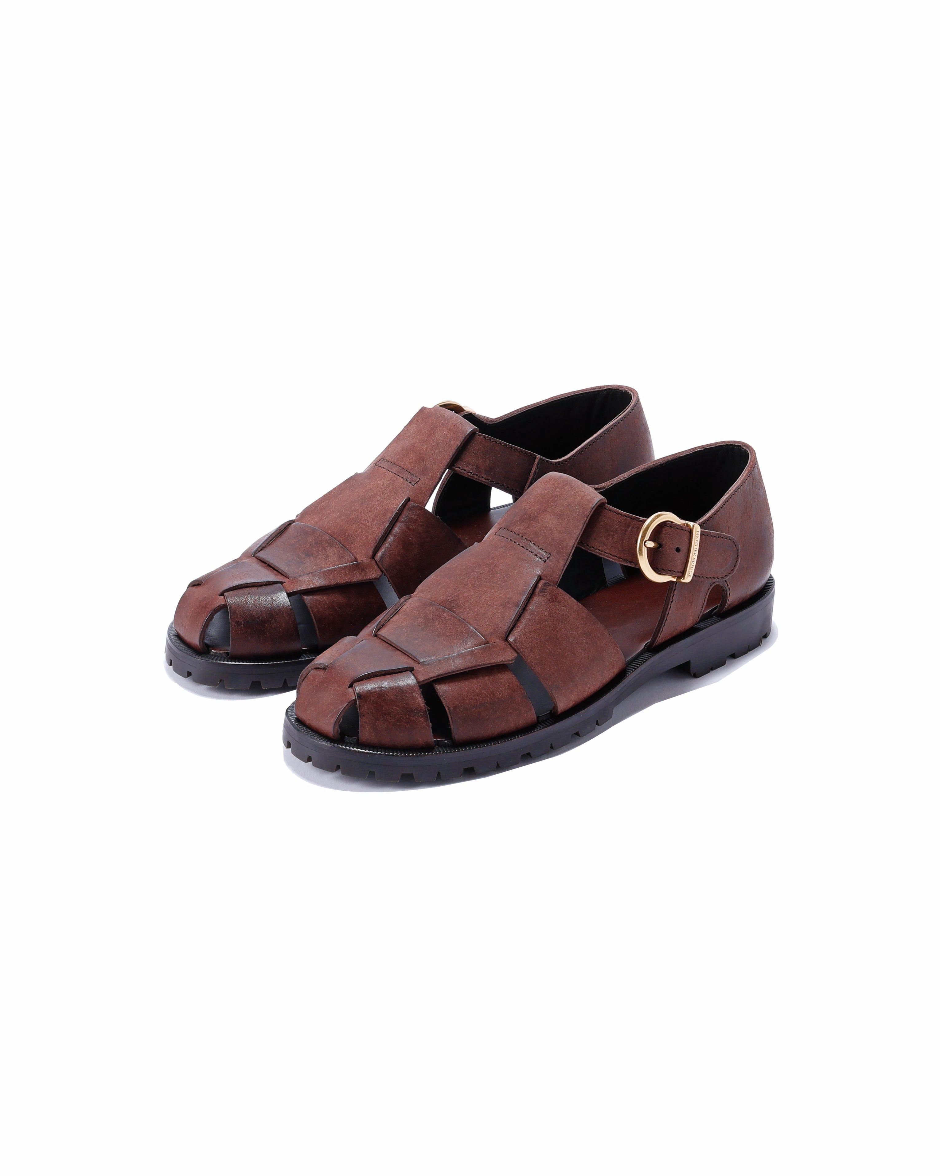 I created fisherman sandals, which were worn by European fishermen. They have a structure that wraps around the foot securely by weaving a thick belt into them.