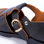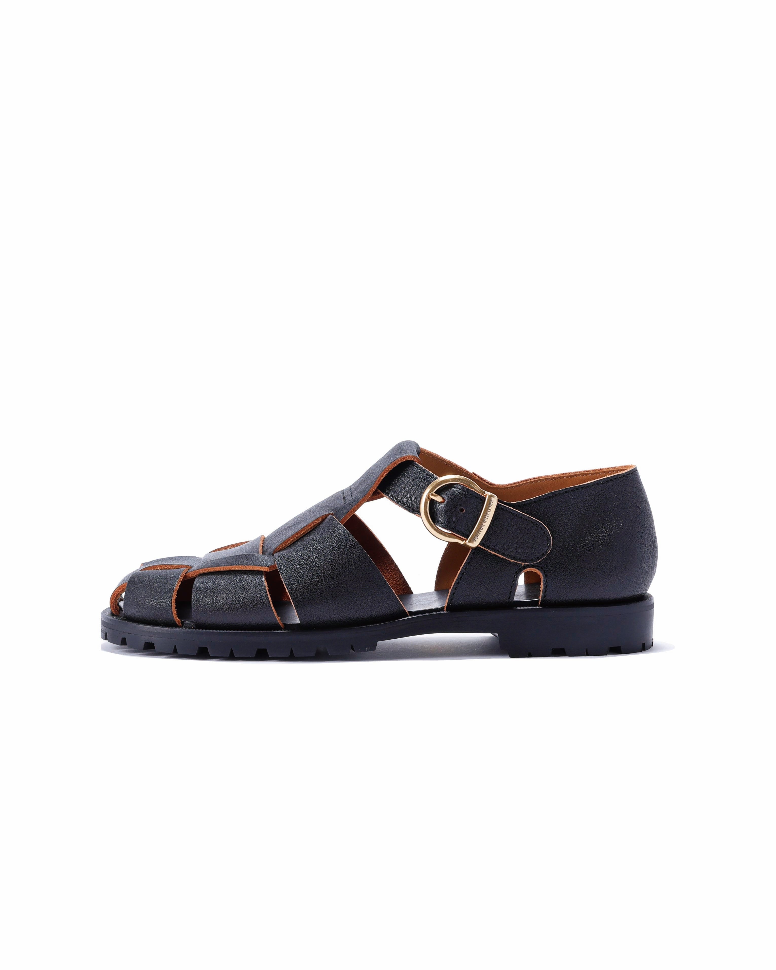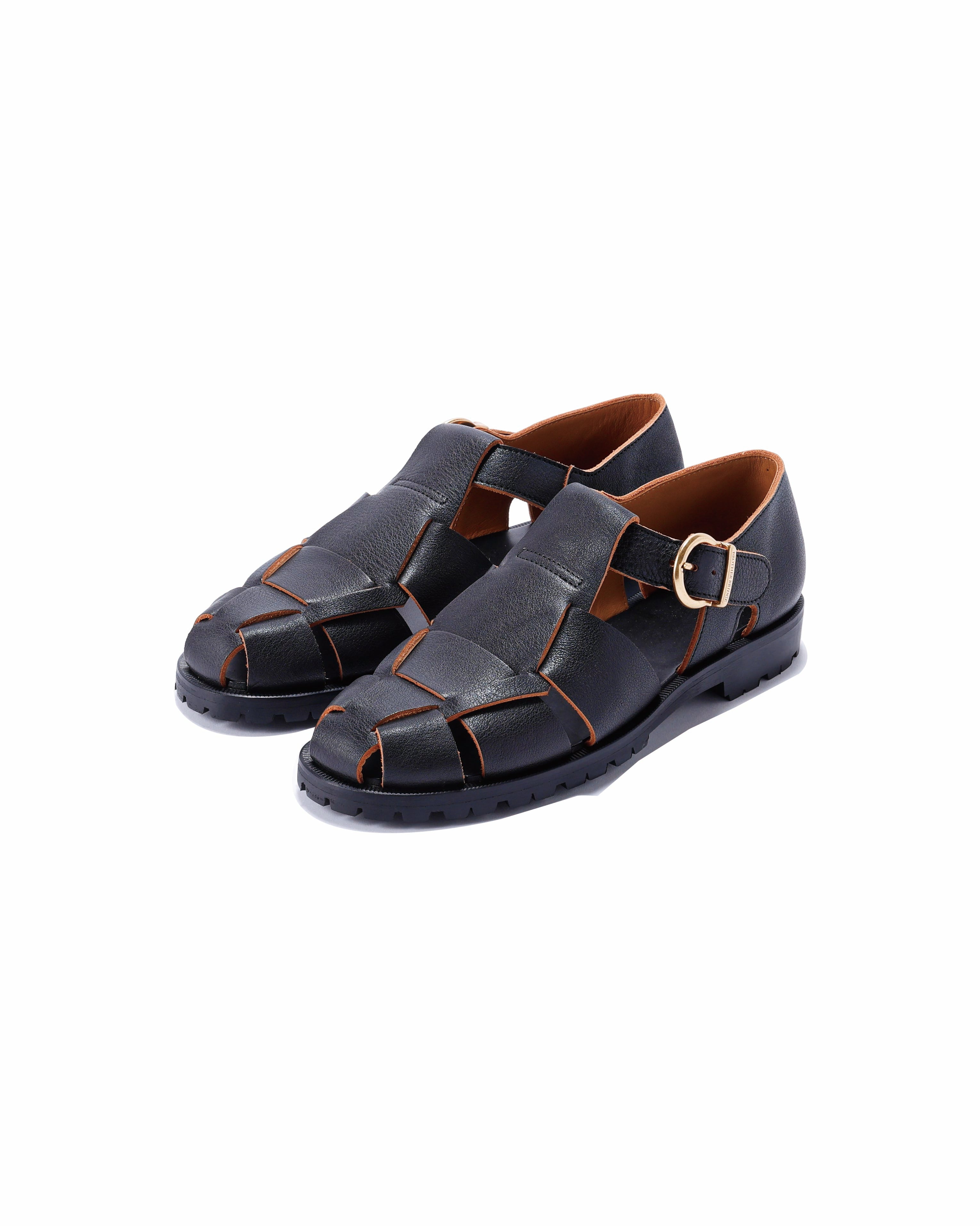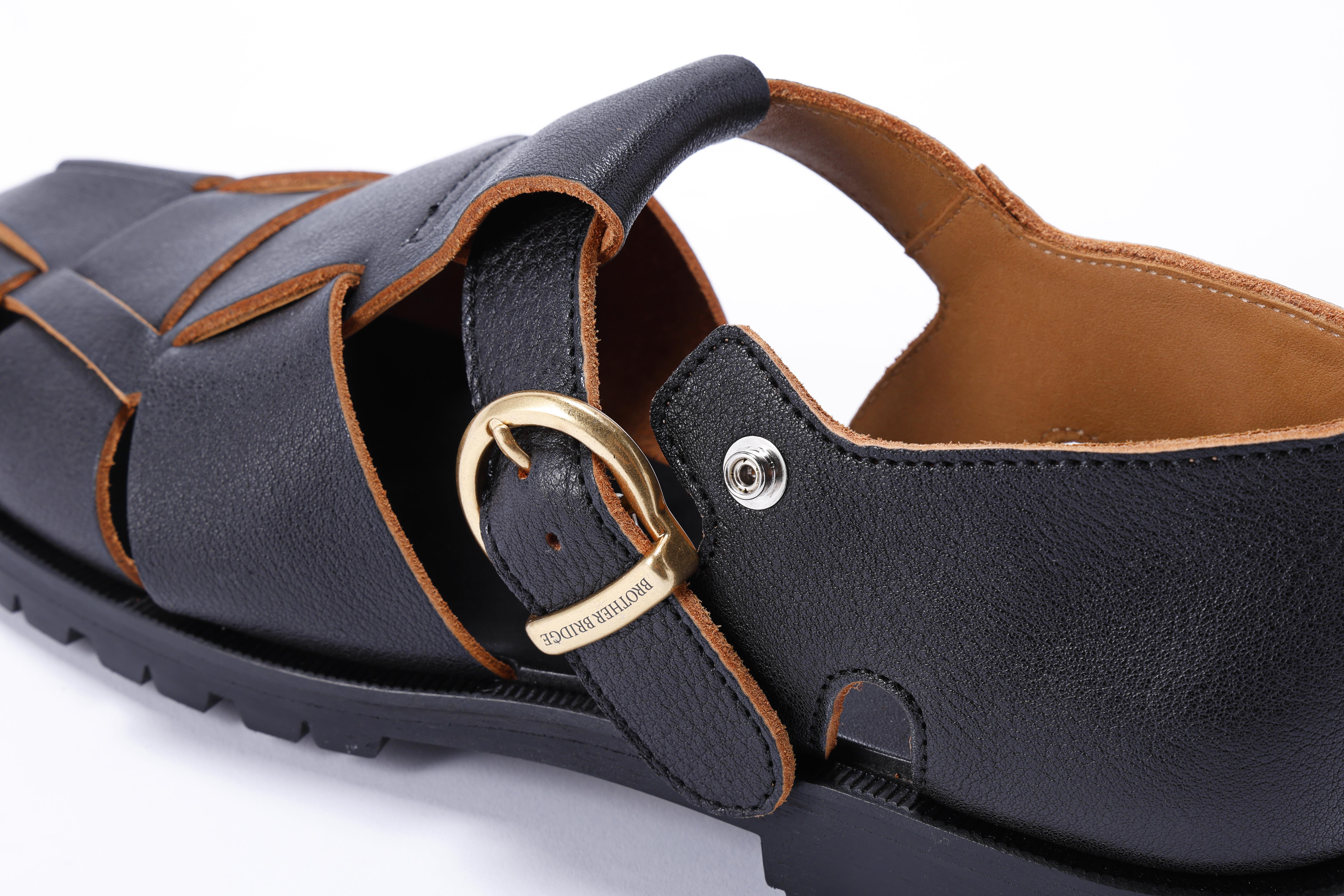 I created fisherman sandals, which were worn by European fishermen. They have a structure that wraps around the foot securely by weaving a thick belt into them.