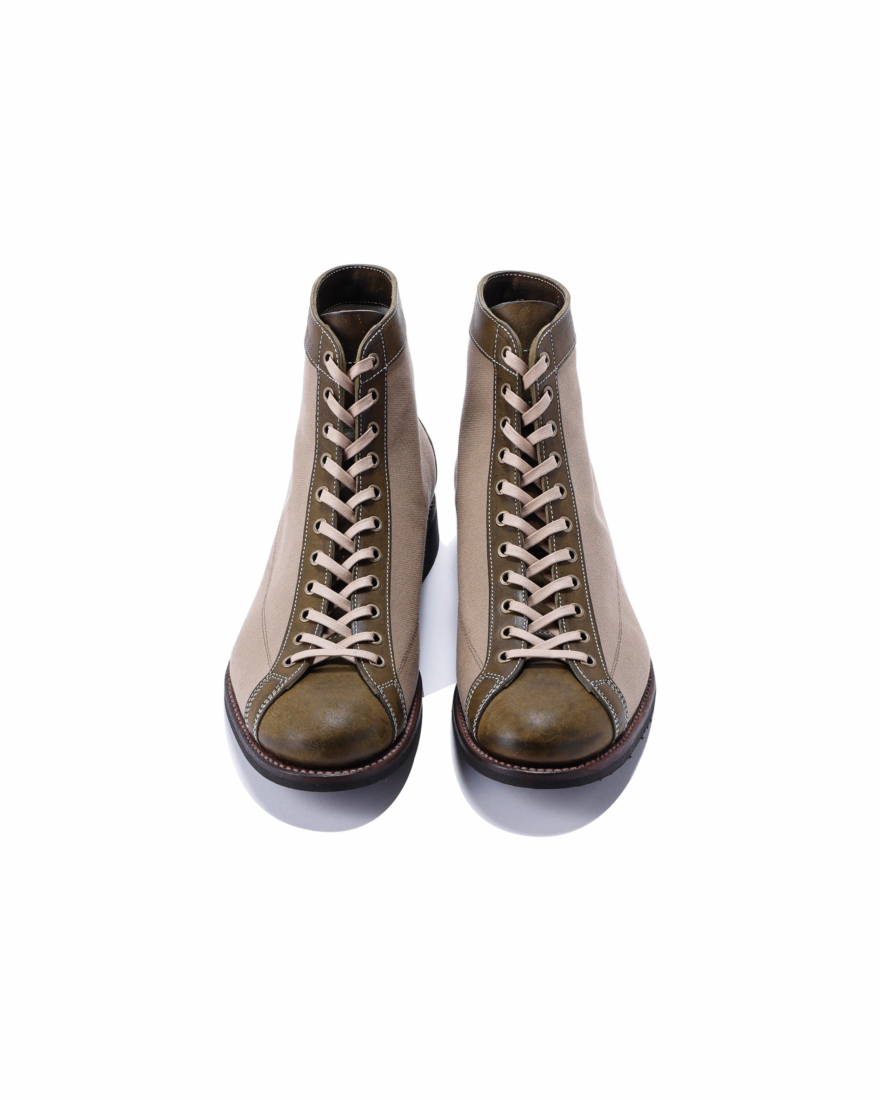 We've recreated the iconic HENRY model as a full-scale athletic sneaker from the 1920s. It combines the texture of duck fabric with leather. While the textures are different, this pair allows you to experience the aging process of each material.