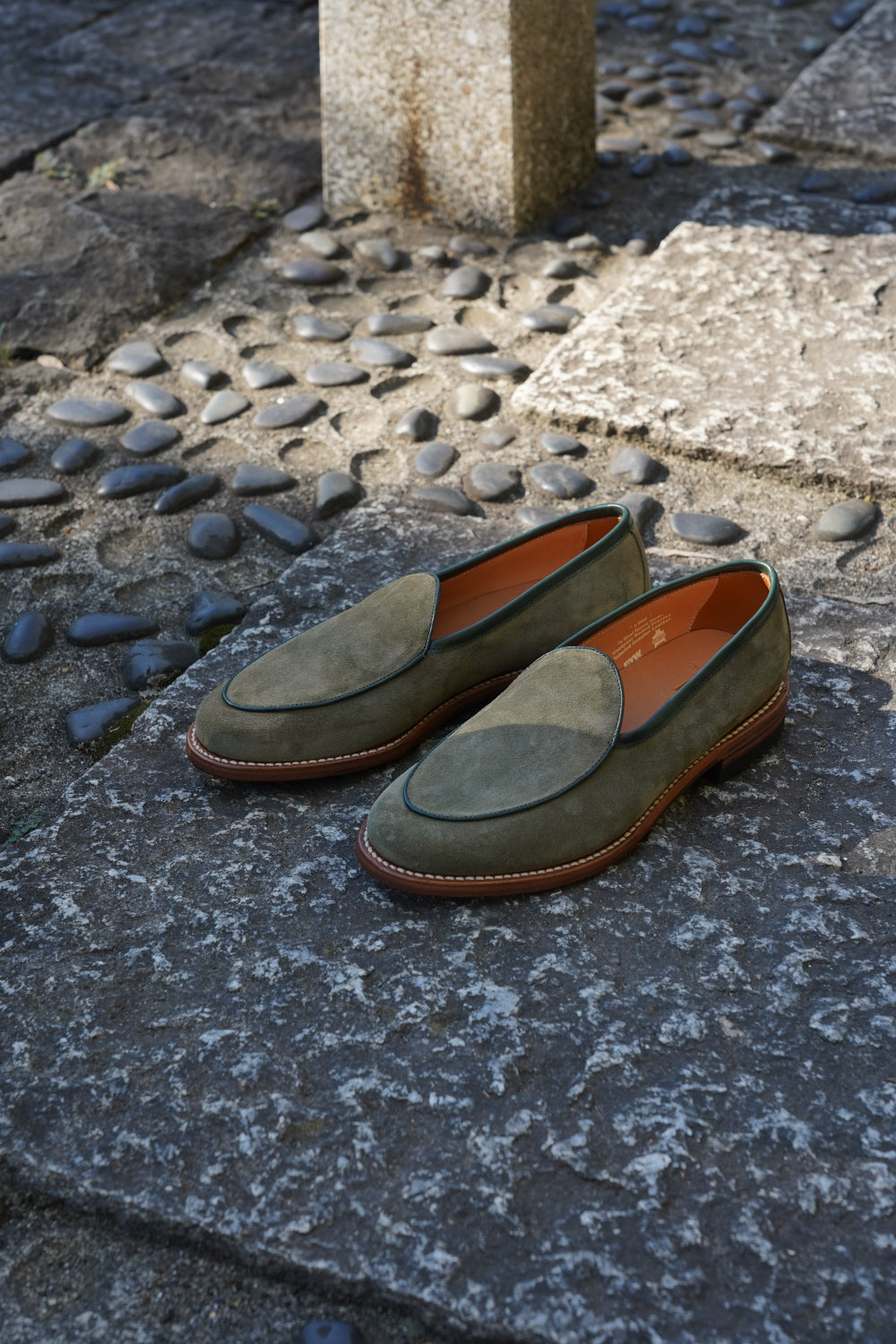 イタリアのオペラ社が作り出すスエードを採用しました。毛足が柔らかく短いのが特徴で非常に滑らかです。銀面が残る為とても耐久性が高く、スエード面には撥水加工が施されていますので、雨天時も気兼ねなく履くことができる素材です。
