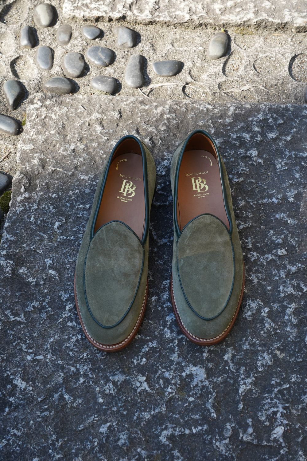 ニューヨーク5番街にあった老舗の高級百貨店”ヘンリ ベンデル”の創設者であるHenri氏が、ベルギーの靴職人と一緒に作り上げたことから「Belgian Shoes」という名が冠されたという。伝統的なベルジャンシューズは華奢でソールも薄いですが、BBのトラッド&カジュアルに合うようにボリュームを持たせ再構築しました。一見ヨーロッパの匂いがしますが、太めのパンツに合わせると丁度いいバランスになります。