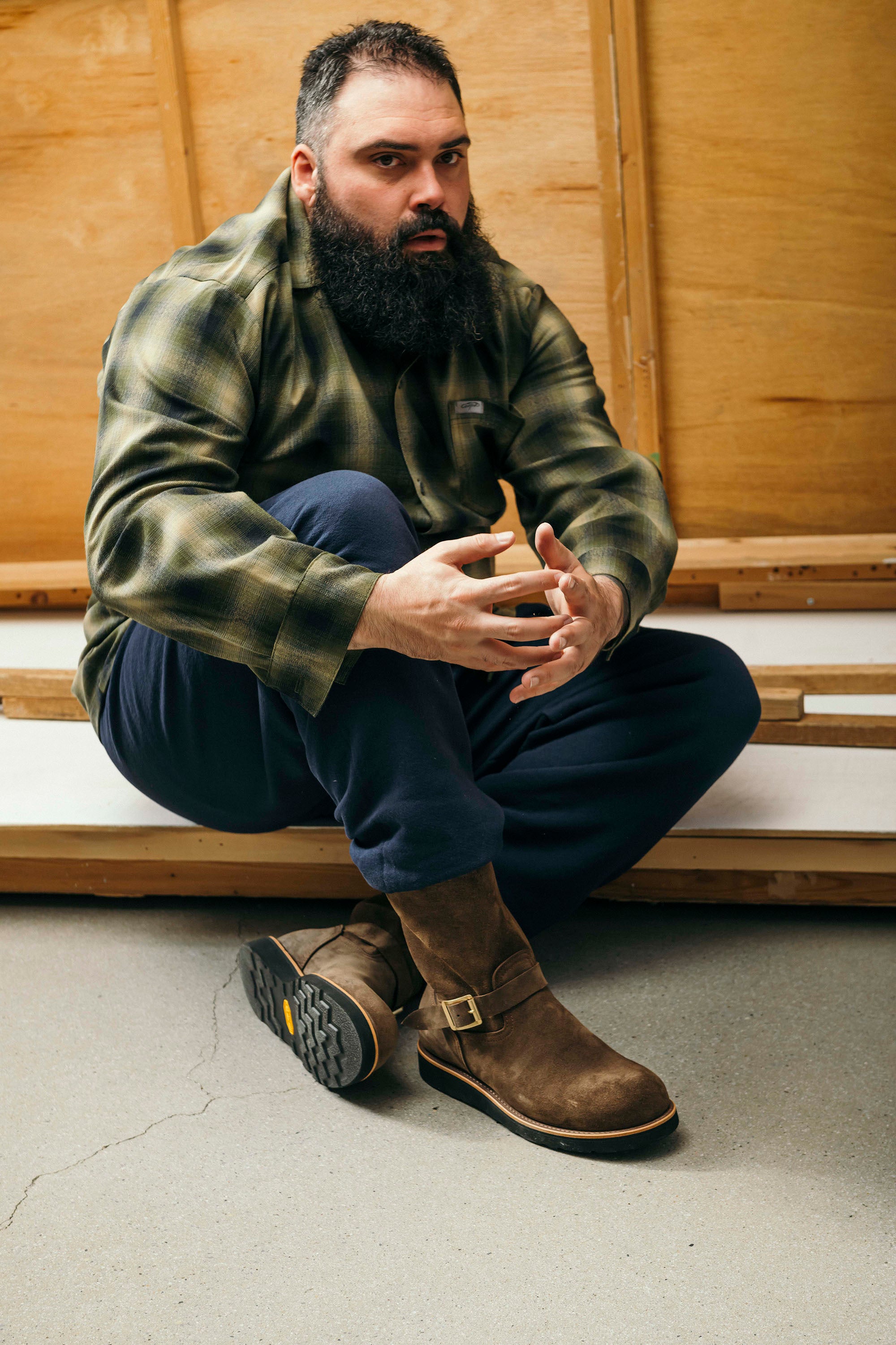 鉄道作業員が愛用していたエンジニアブーツと、農地で働くローパーブーツから着想を得た1足です。