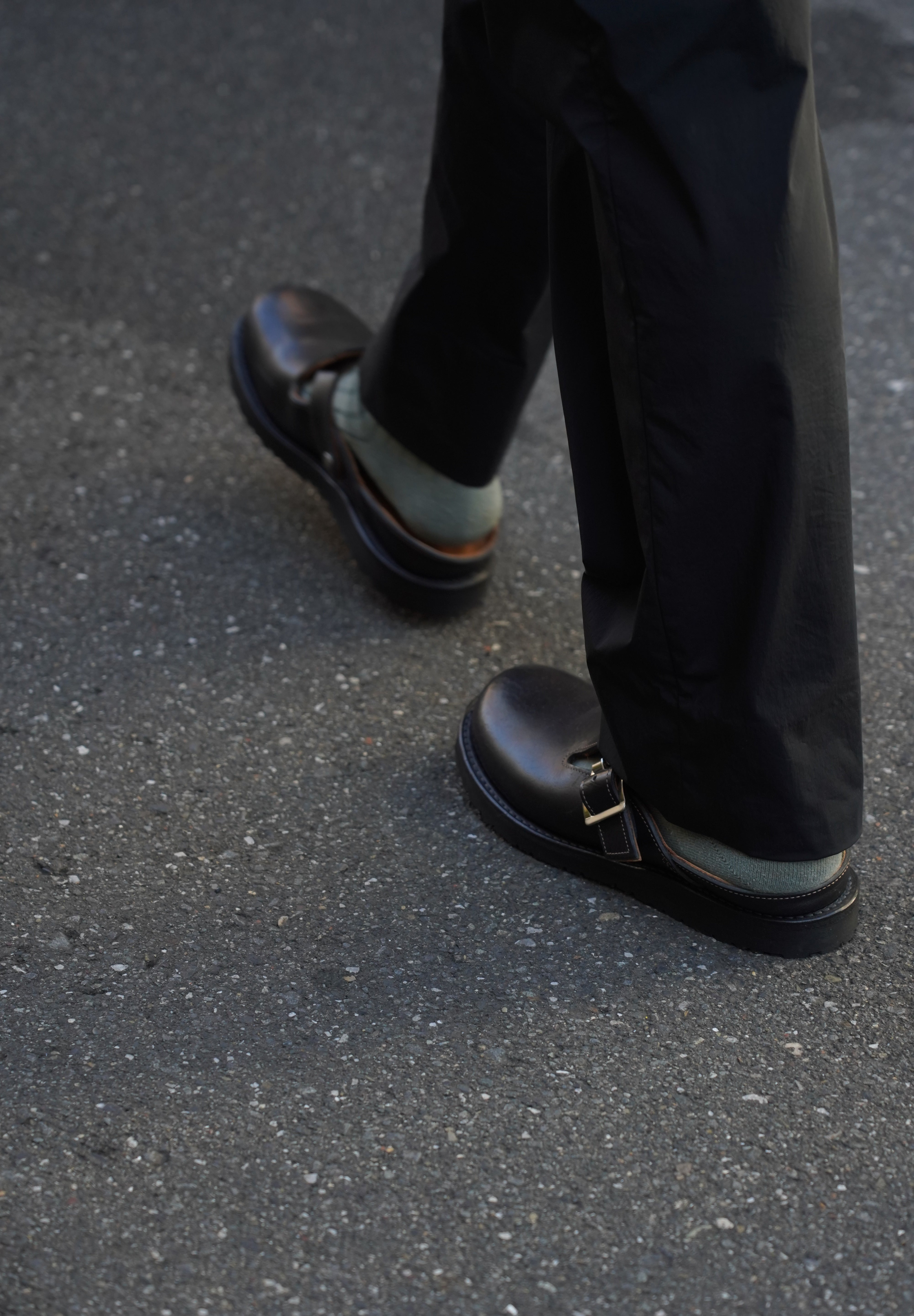 裸足で履いても大丈夫な仕様ですが、是非可愛い靴下に合わせてパンツとのスタイリングを楽しんでください。