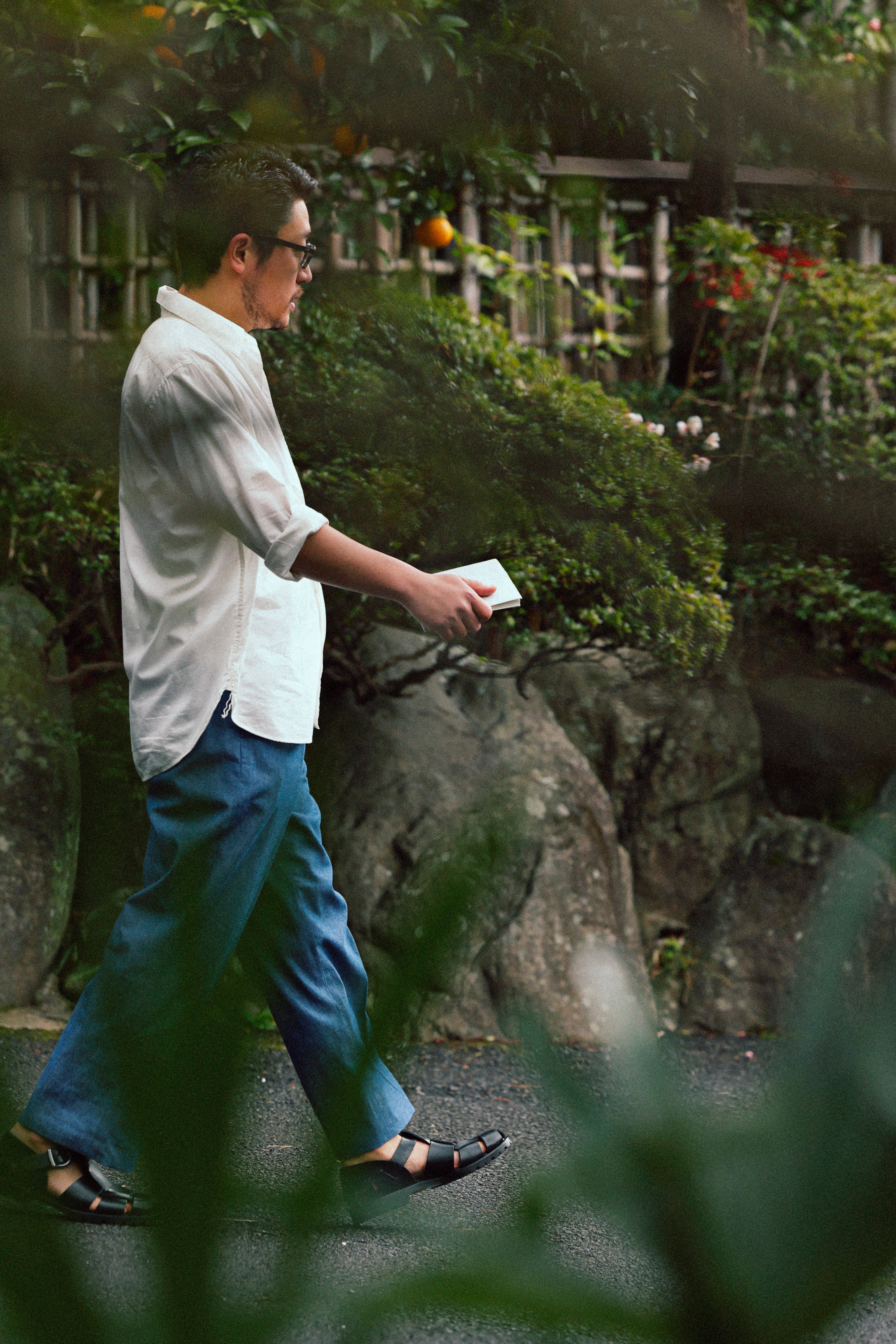 肉厚でコシのある革を一枚革で横幅がゆったりとした木型を用い、ソックスで合わせる事も想定した作りになっております。また、耐久性のあるVibramソールを装着した長年履くことのできるサンダルです。