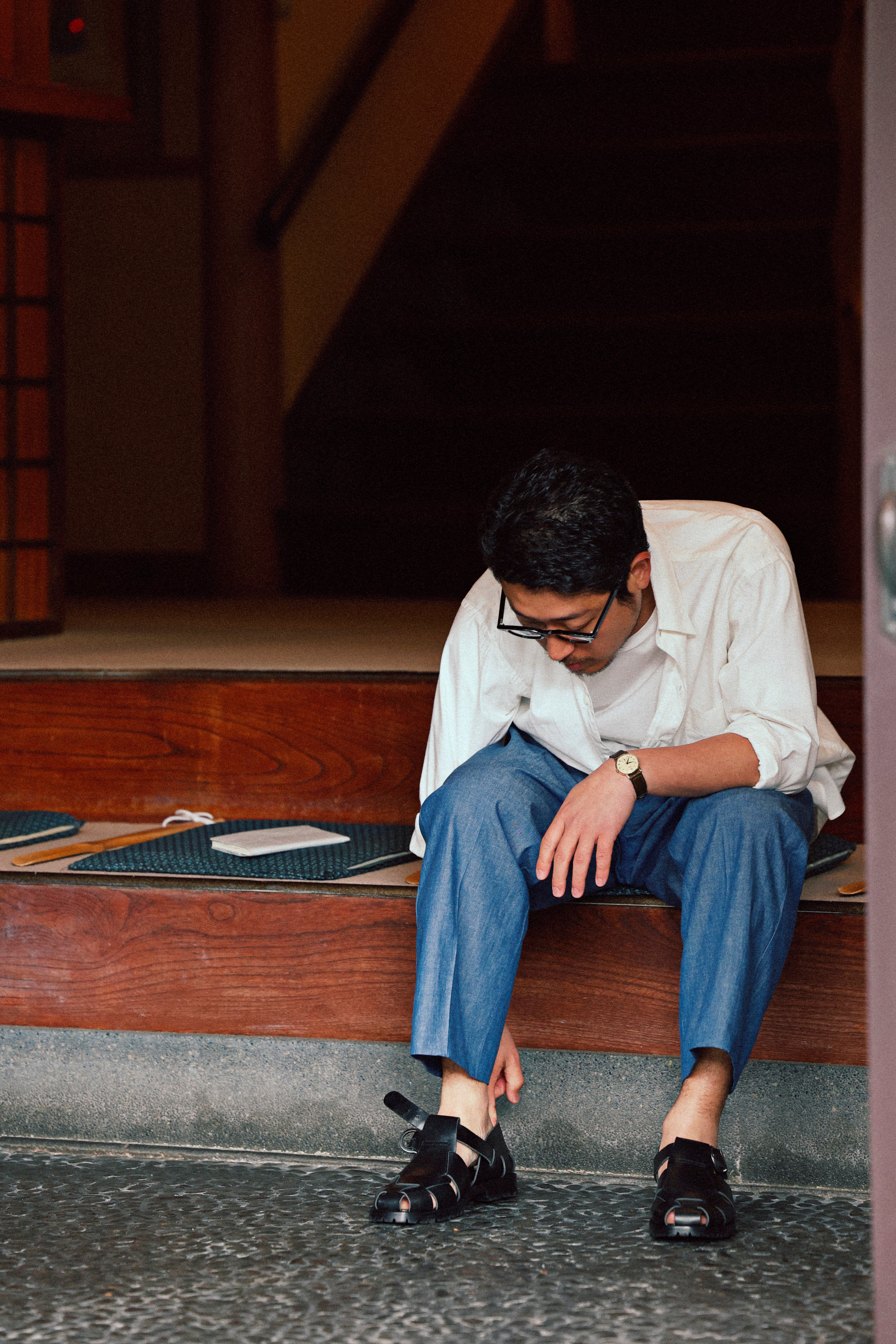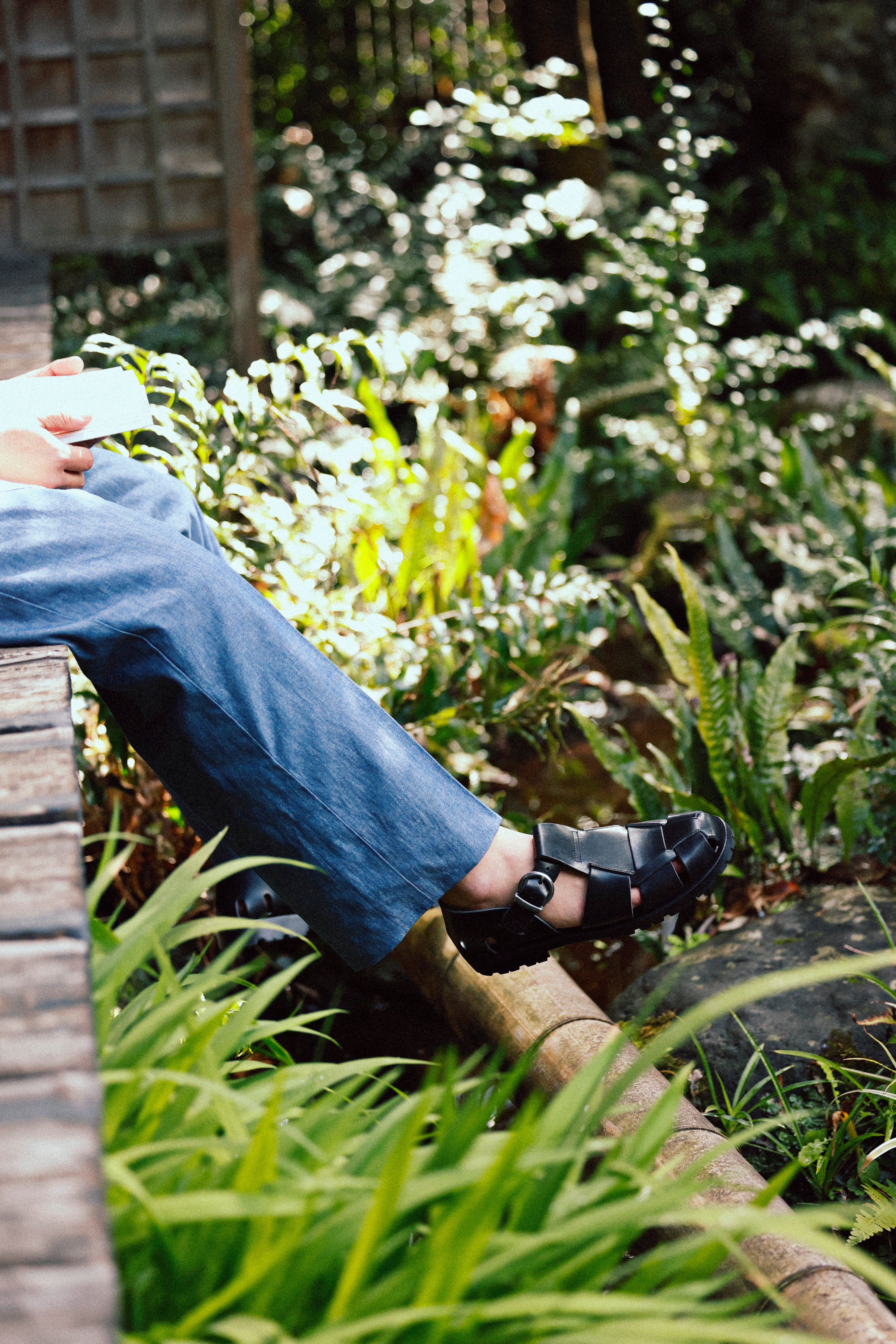 ヨーロッパの漁師が履いていたフィシャーマンサンダルを制作いたしました。太いベルトで編み込まれた足をしっかりと包み混んでくれるサンダルです。