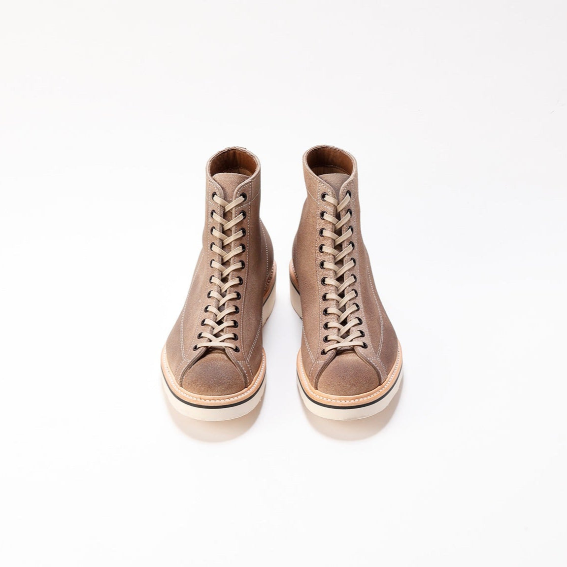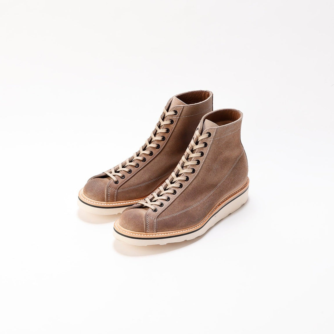 ワックスは使い込むごとに馴染み、部分的に取れたり深みを増すことで、独自のエイジングが楽しめます。特に、履きジワや摩耗による色ムラが美しい表情を作り出し、他のスエードでは見られない変化を楽しめます。