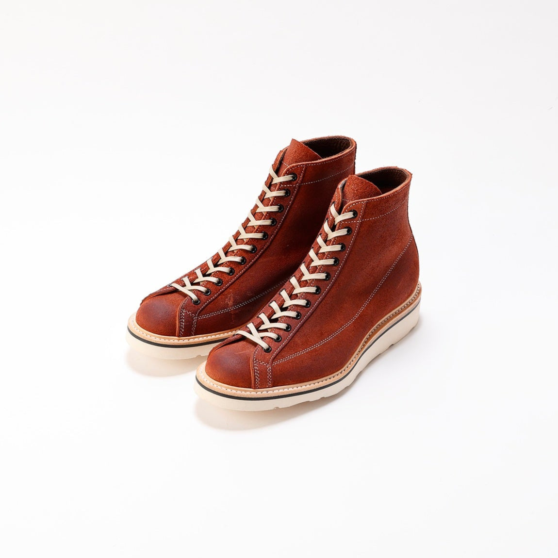 ワックスは使い込むごとに馴染み、部分的に取れたり深みを増すことで、独自のエイジングが楽しめます。特に、履きジワや摩耗による色ムラが美しい表情を作り出し、他のスエードでは見られない変化を楽しめます。