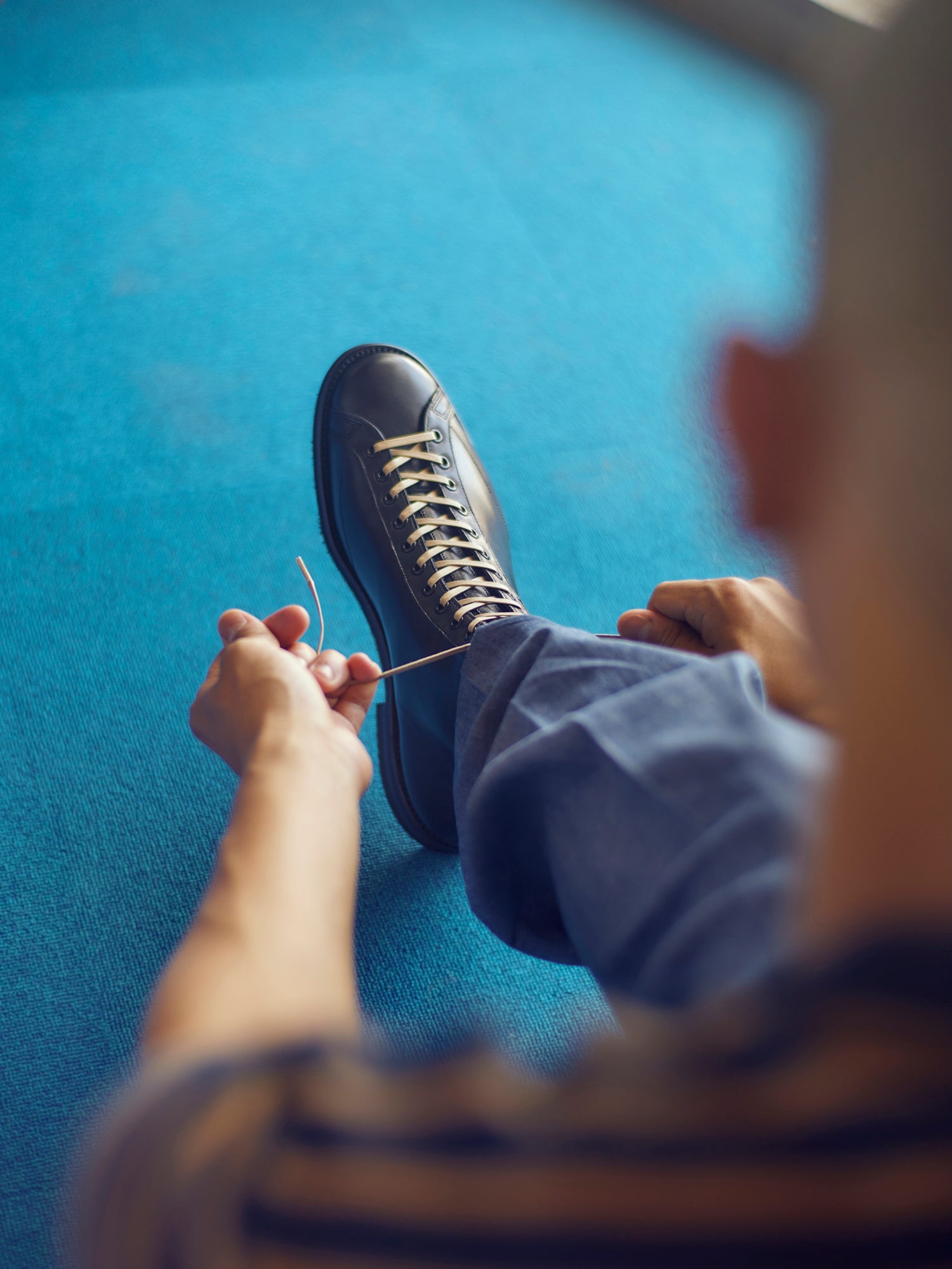 スポーティーなデザインに英国靴が持つ気品を加えました。トゥから流れるようなアイレットのラインとシューレースが唯一無二なスタイルです。