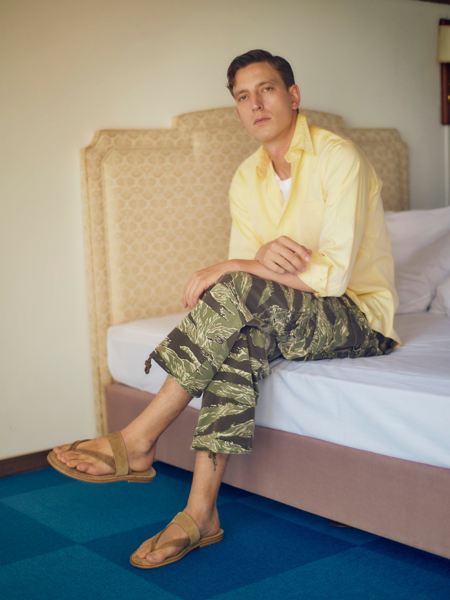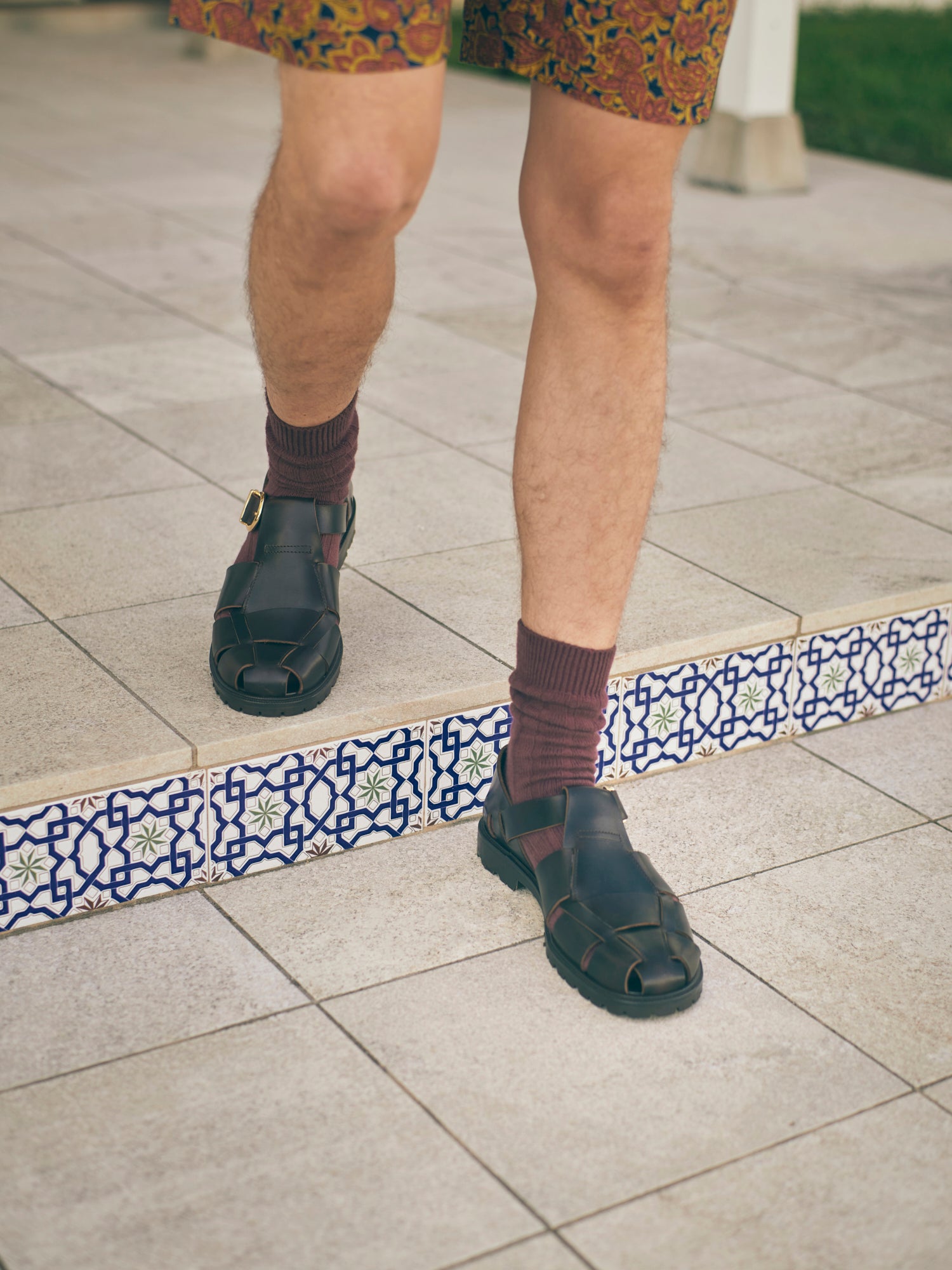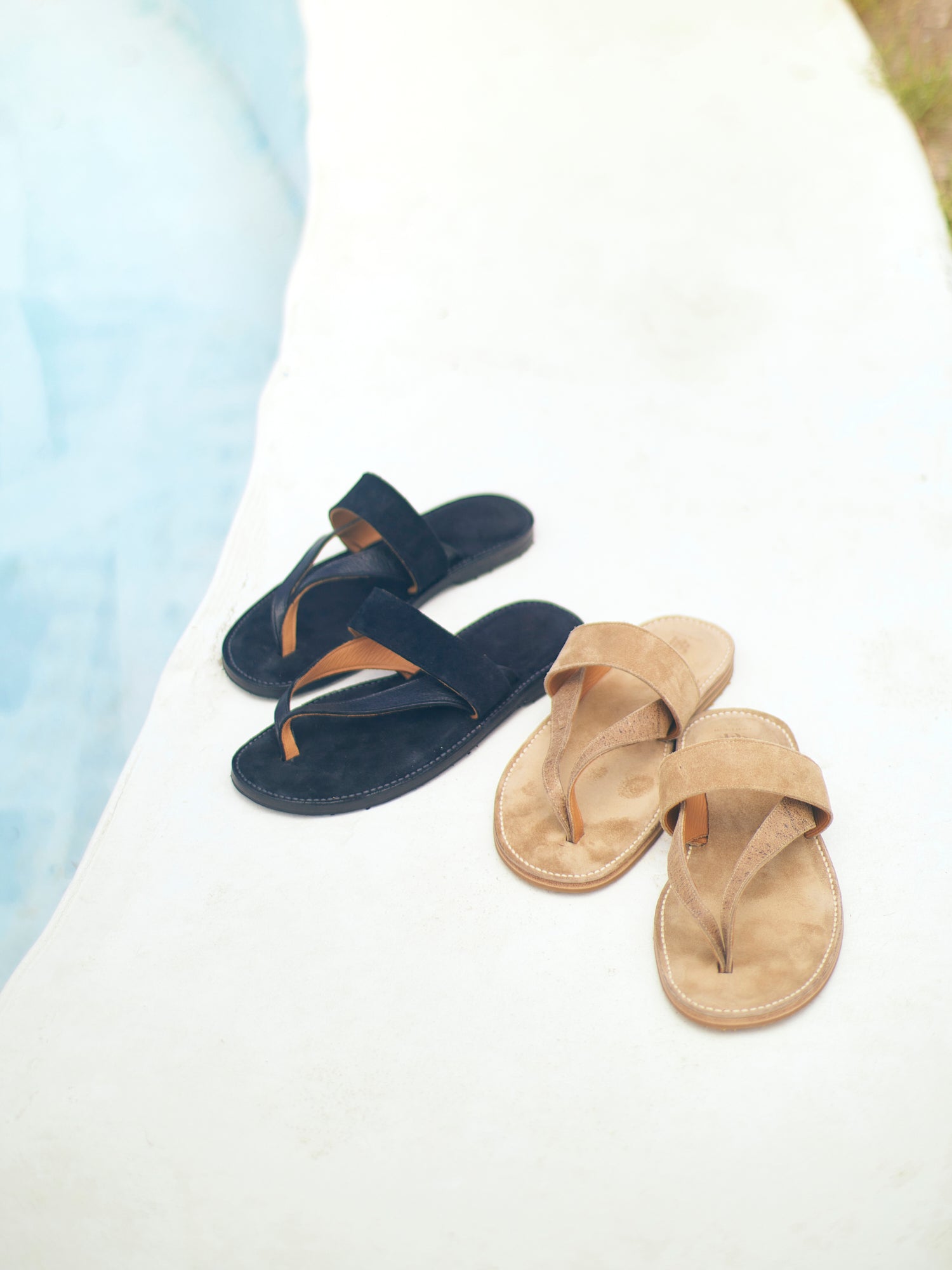 古くからリゾート地で履けていたレザーサンダルをBROTHER BRIDGEらしく上品に仕上げました。サンダルの定番デザインであるトングタイプのサンダル。難点は指の間が痛くなることや、歩きにくいこと。パレルモのサンダルはトングタイプの良さを残しながら、長時間の歩行にも快適に過ごせるよう甲ベルトを加えています。